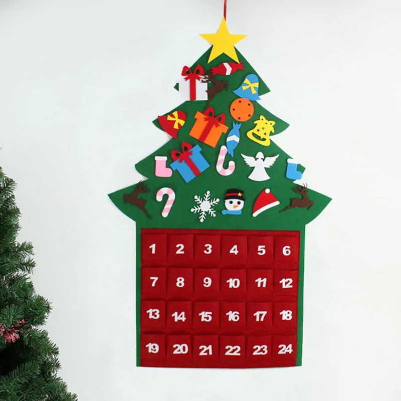 Diy Merasa Pohon Natal Kain Kalender Advent Countdown untuk Natal Munculnya Kalender Anak anak Hadiah Natal Pintu Dinding Gantung Menghias|Pohon| - AliExpress