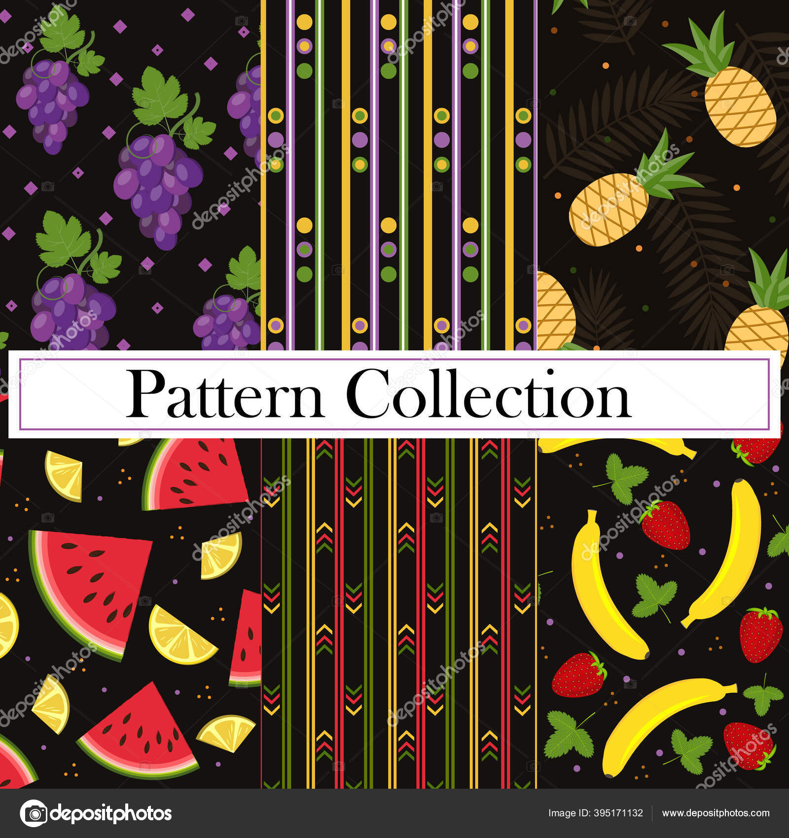 Set Koleksi Buah Dan Pola Geometris Dengan Gambar Buah Dan Stok Vektor © Lesinka #395171132