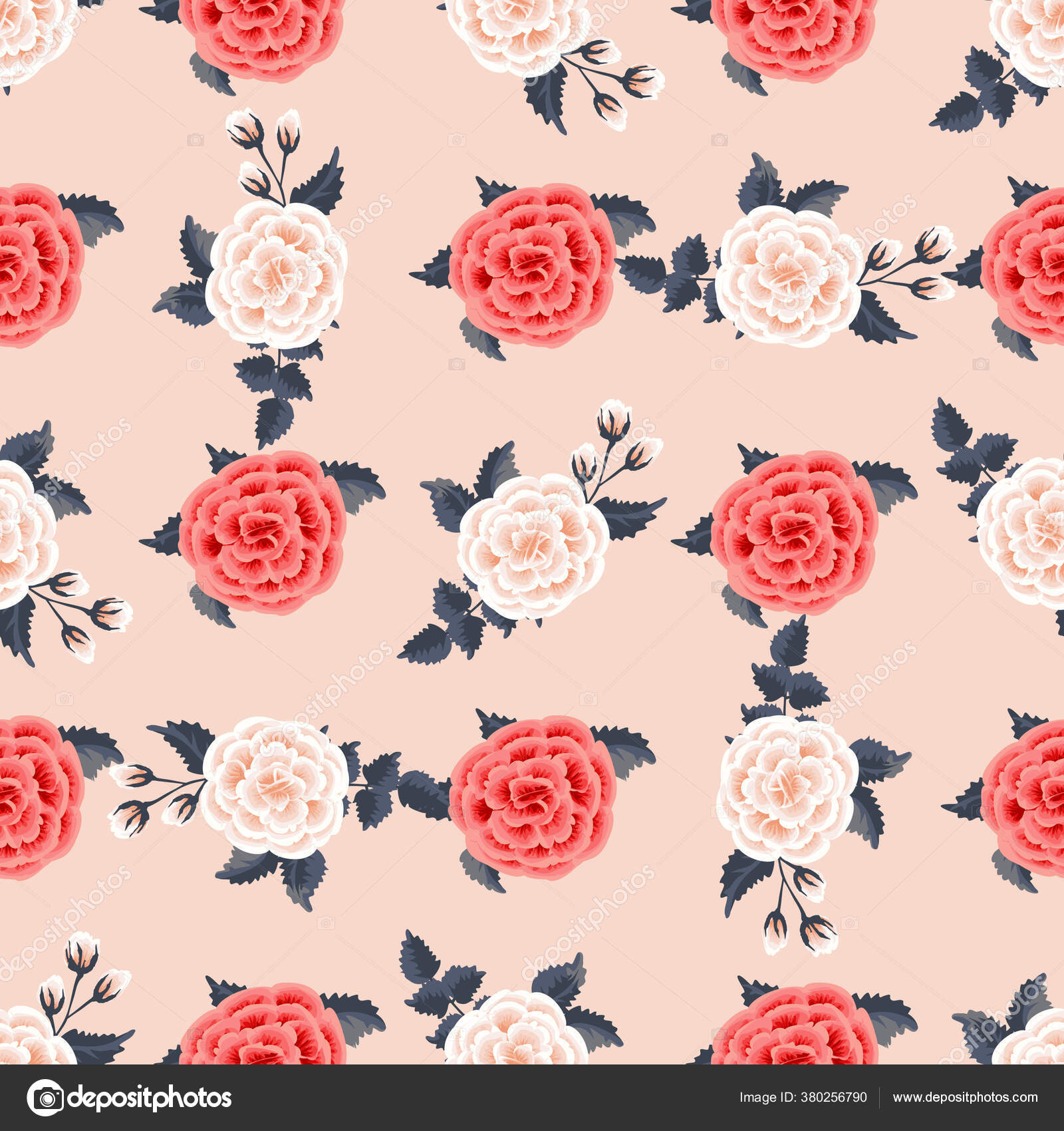Pola Bunga Mulus Dengan Bunga Mawar Mekar Dan Daun Hijau Stok Vektor © design.at.ua@gmail.com #372194826