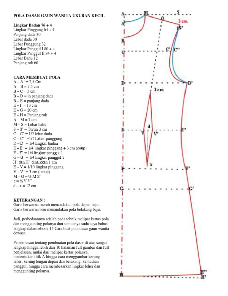 POLA DASAR GAUN WANITA UKURAN KECIL