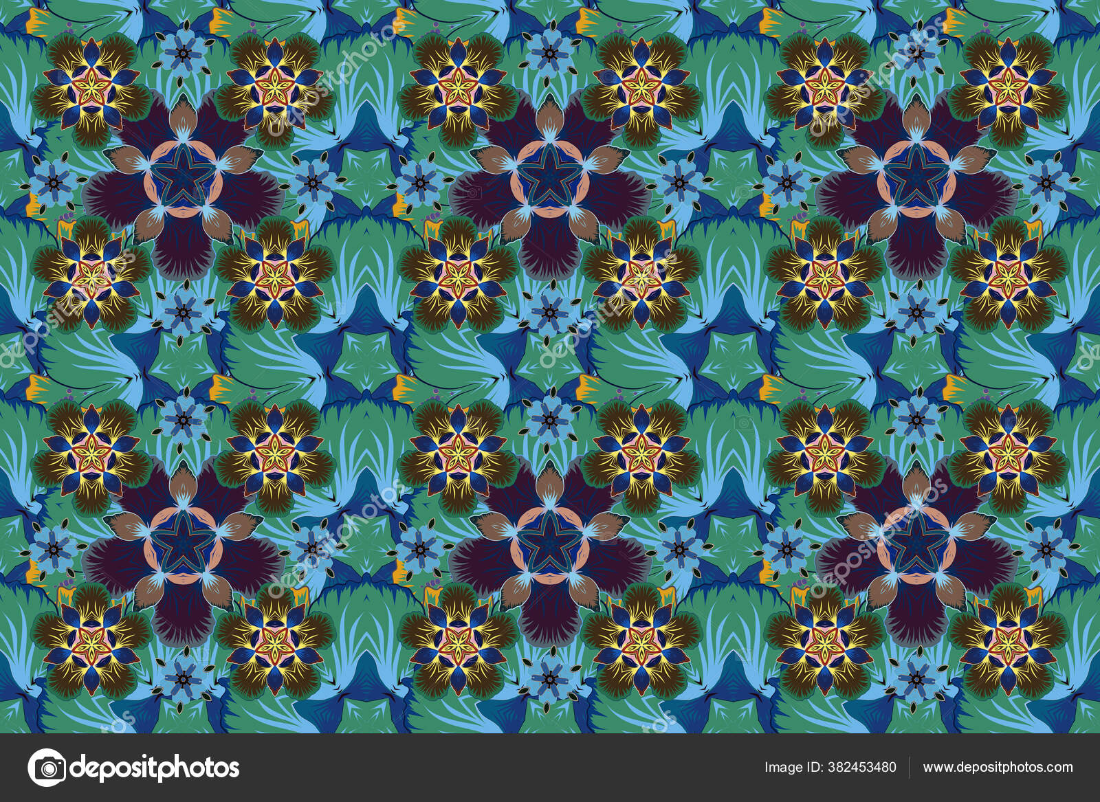 Pola Flora Etnis Tak Berjahit Hijau Coklat Dan Biru Ilustrasi — Stok Foto © design.at.ua@gmail.com #382453480
