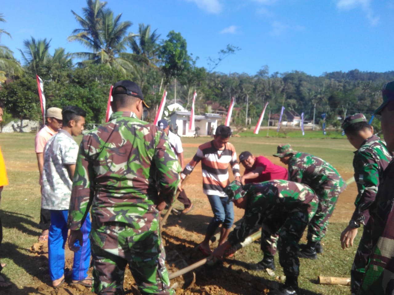 Serunya Gali Pondasi Tiang Bendera Upacara Pembukaan TMMD