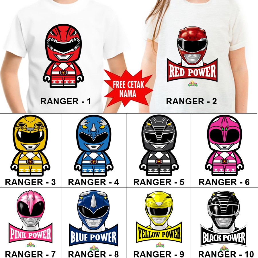 Baju Kaos ANAK DAN DEWASA POWER RANGER COUPLE (FREE NAMA) | Shopee Indonesia