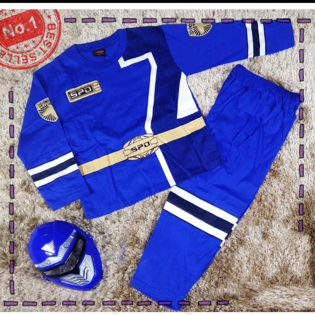 SETELAN ANAK BAJU ANAK KOSTUM POWER RANGER SPD BIRU PANJANG USIA 8-11 TAHUN | Shopee Indonesia