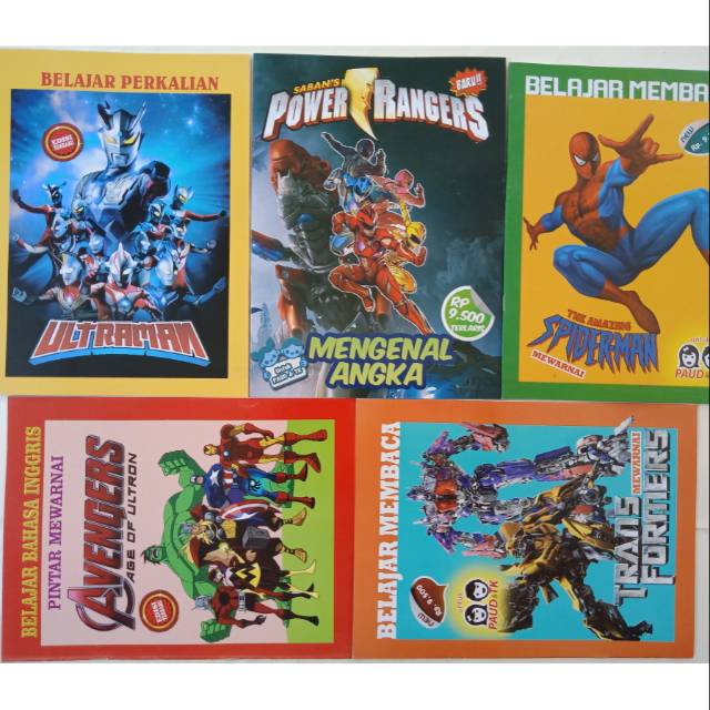 Paket 5 Buku Mewarnai Seri Heroes Spiderman - Power Rangers - Ultraman - Avengers - Transformers | Shopee Indonesia