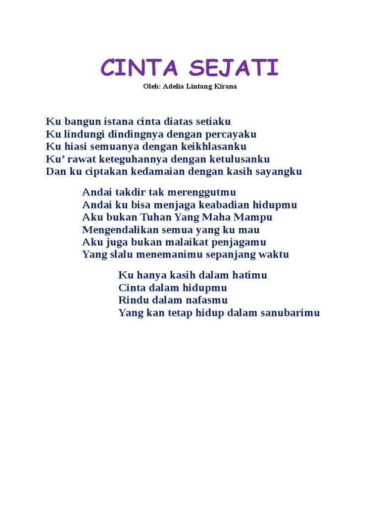 Contoh Bait Puisi Cinta Sejati yang Terpopuler | Puisi cinta sejati, Puisi cinta, Cinta sejati