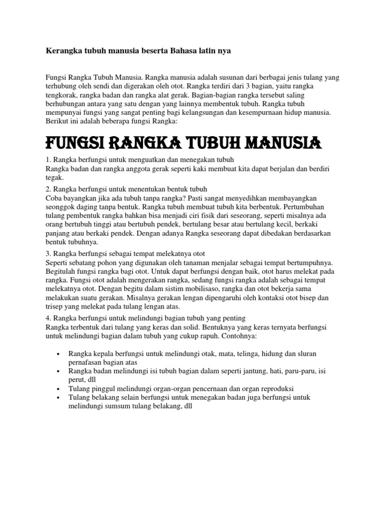 DOC) Bab I Kerangka Tubuh Manusia dan fungsinya | Dian Utami - Academia.edu