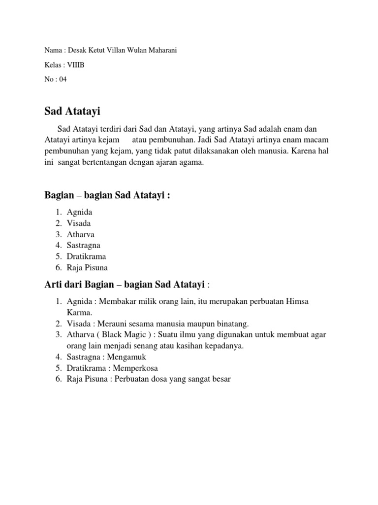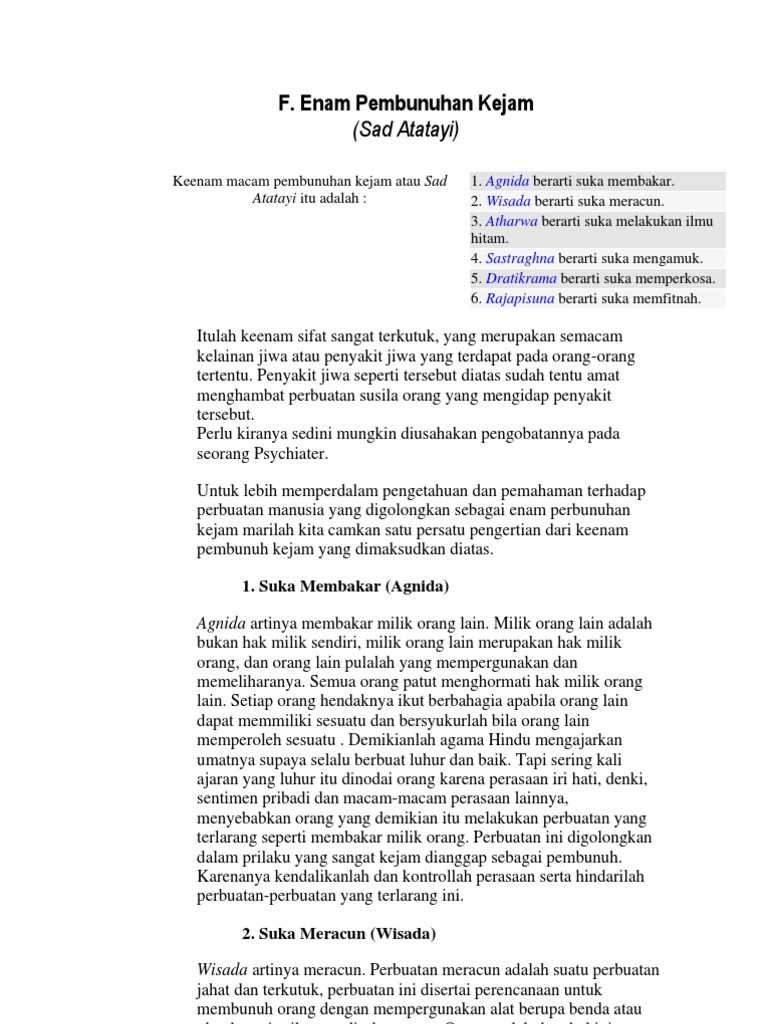 Pengertian Sad Atatayi dan Bagian - Bagiannya - MUTIARA HINDU