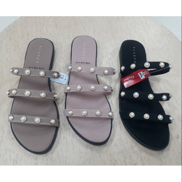 Sandal teplek wanita kombinasi mutiara, Fesyen Wanita, Sepatu di Carousell