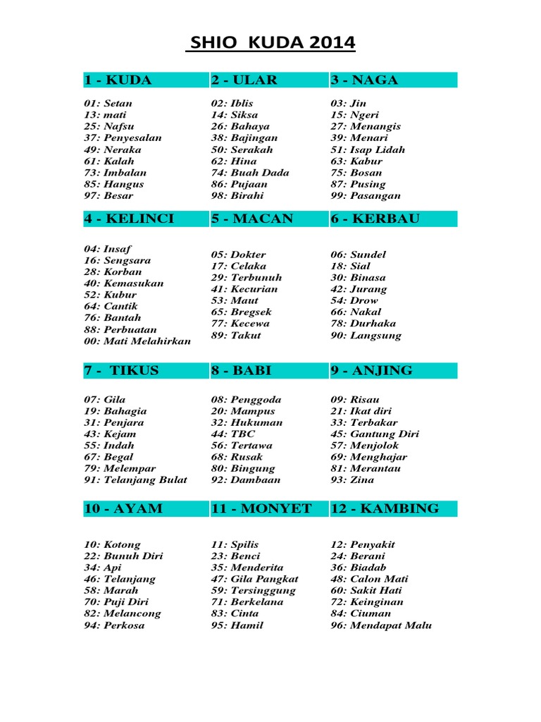 Tabel Shio 2014 - Prediksi ANGKA TOGEL | Facebook