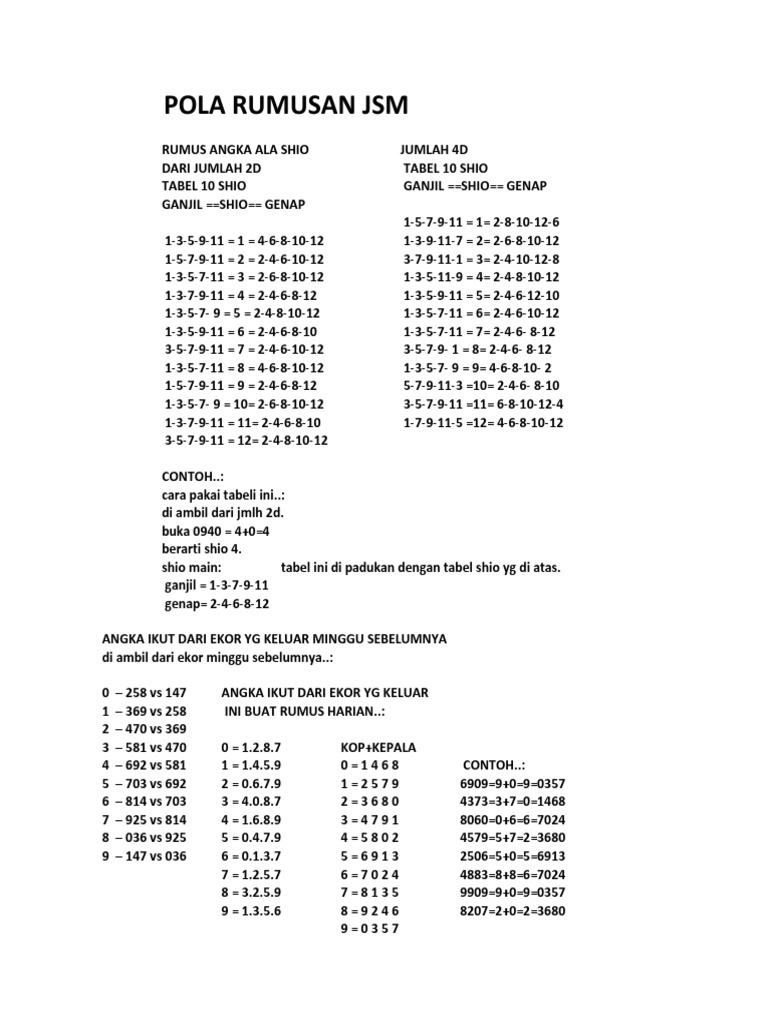 POLA RUMUSAN JSM | JALUR SHIO MAIN H & F