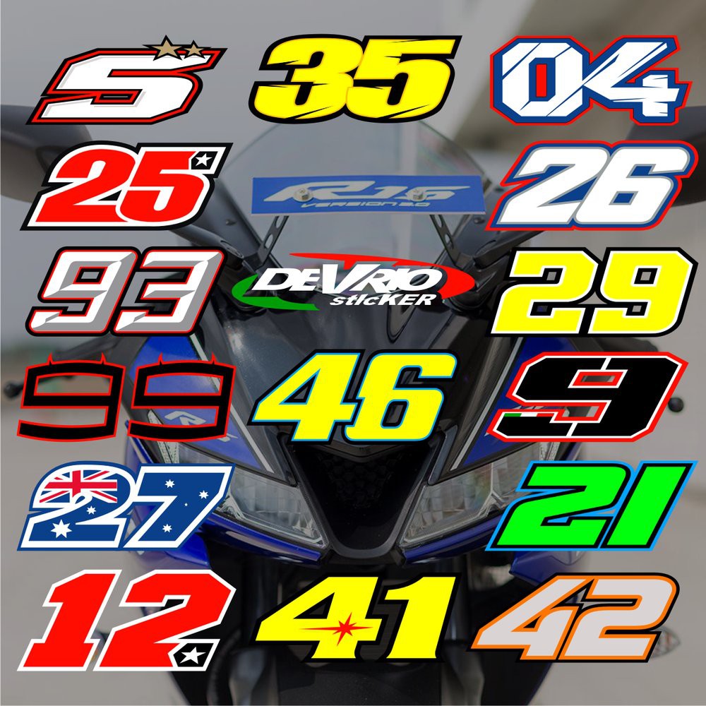 Stiker Moto GP Nomor Start Balap Cutting Sticker Custom Variasi Helmet dan Windshield YZF R15 | Shopee Indonesia