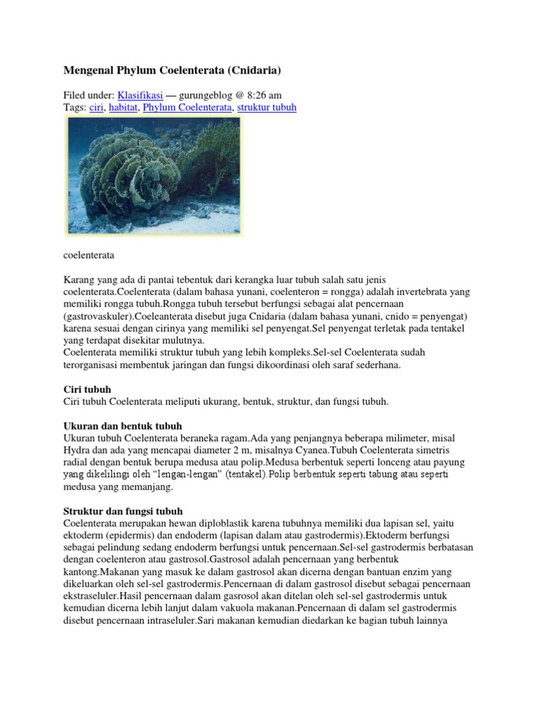 DOC) Filum Coenlenterata | nazrina diannisa - Academia.edu