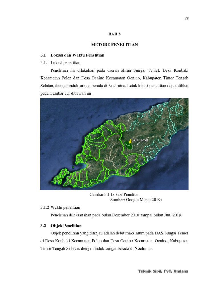 Bab 3 Metode Penelitian 3.1 Lokasi dan Waktu Penelitian: Teknik Sipil, FST, Undana
