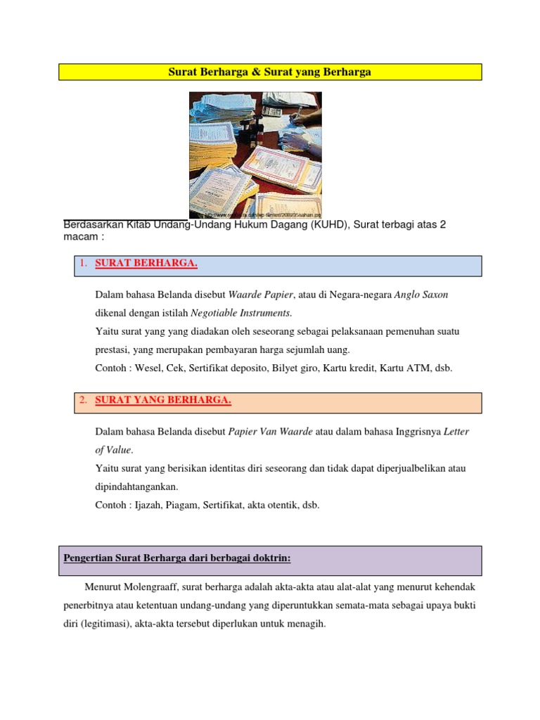 Jenis - Jenis Surat Berharga Dalam KUHD - DUNIA HUKUM
