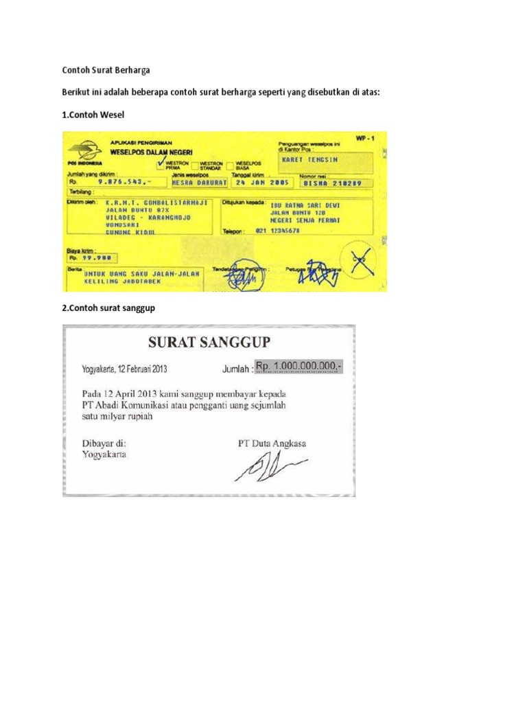Surat Berharga Dan Surat Yang Berharga - Kumpulan Contoh Surat