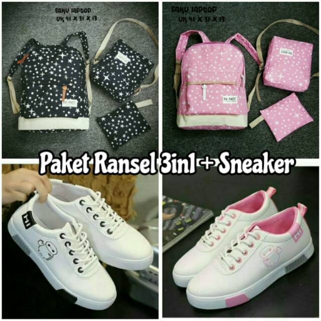 Paket Hemat Ransel Panda 4in1 + Sepatu Polos/Tas Sekolah/Tas Terbaru/Tas Punggung lokal murmer | Shopee Indonesia