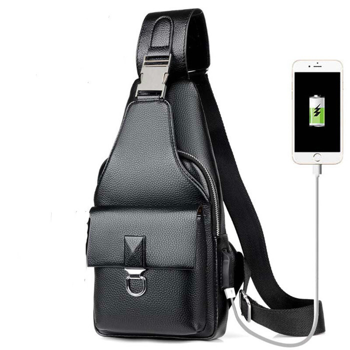 Tas Kulit Pria/Tas Selempang Kulit/Sling Bag Slempang Pria USB Tas/Tas - Fashion Pria - 786479961