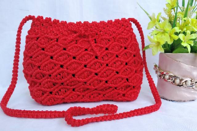 Grosir @50rb / Tas Tali Kur Motif Sisik Ikan Pita / Tas Slempang TaliKur / Tas handmade / Tas Kenur | Shopee Indonesia