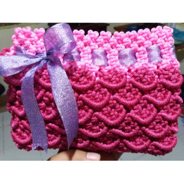 Tas rajut motif sisik ikan - FREE dompet rajut | Shopee Indonesia