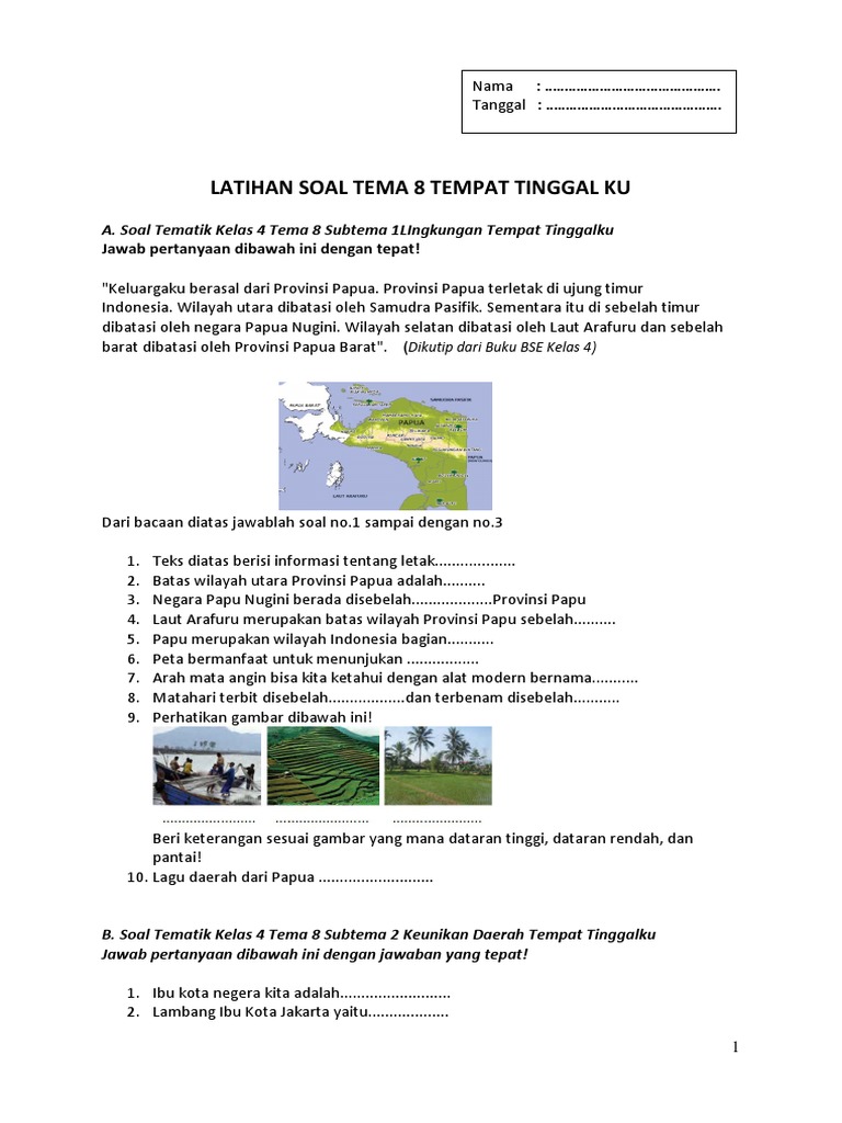 Soal Kelas 4 Tema 8 Tempat Tinggal Ku
