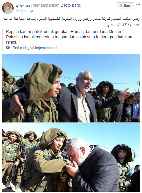 Petinggi Hamas Mencium Tangan Tentara Israel: Hoax - Sekoci Hoaxes