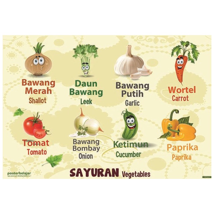 Poster Sayuran untuk Edukasi Anak Usia Dini PAUD TK SD Laminasi Glossy [Tipe 01] | Shopee Indonesia