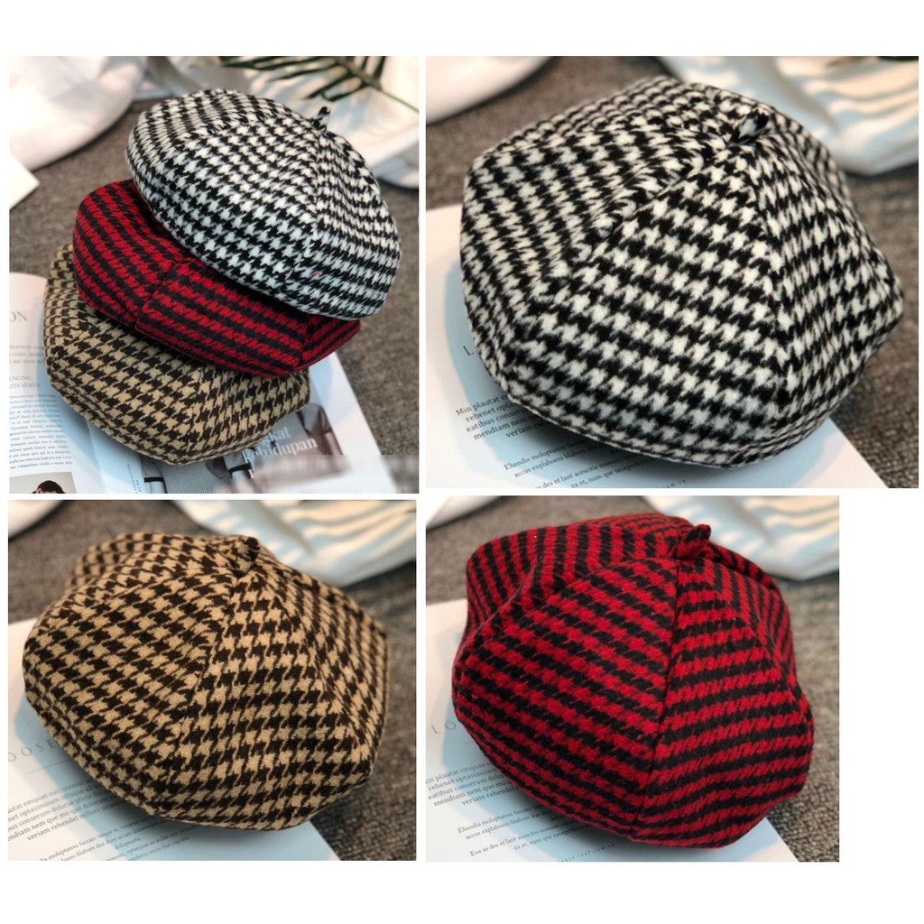 JOYLEEN BEBE] Topi Anak Korea Topi anak gaya pelukis Topi Copet Anak houndhtooth beret Topi Baret | Shopee Indonesia