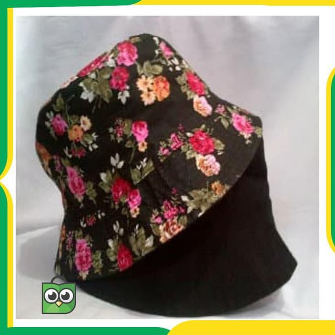 Topi Unik ORIGINAL Topi bucket hat bunga floral hitam bahan bolak balik hitam Topi Outdor | Shopee Indonesia