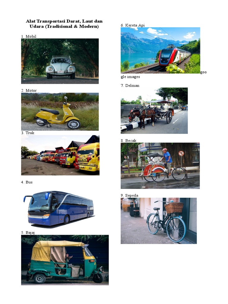 15+ Alat Transportasi Darat, Laut & Udara (Gambar Tradisonal Modern) | The Book