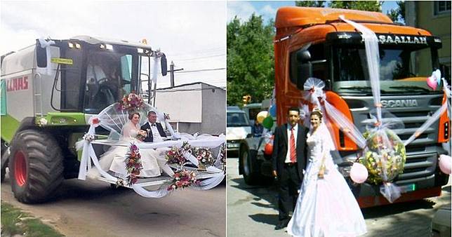 10 Kendaraan pernikahan paling unik, dari truk hingga buldoser | Brilio.net | LINE TODAY