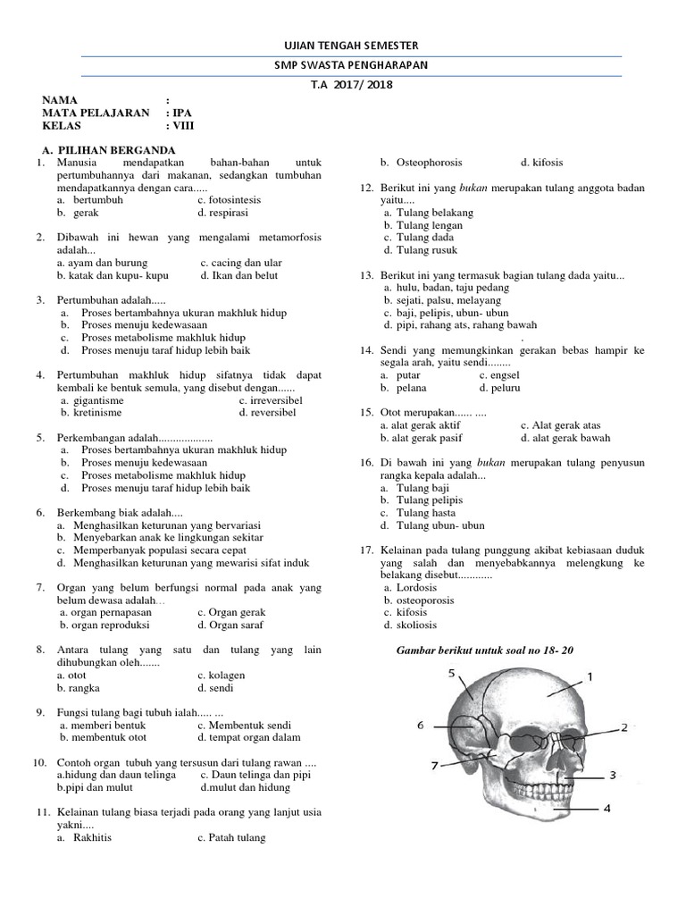 Bank Soal Ipa Biologi Nama: Kelas
