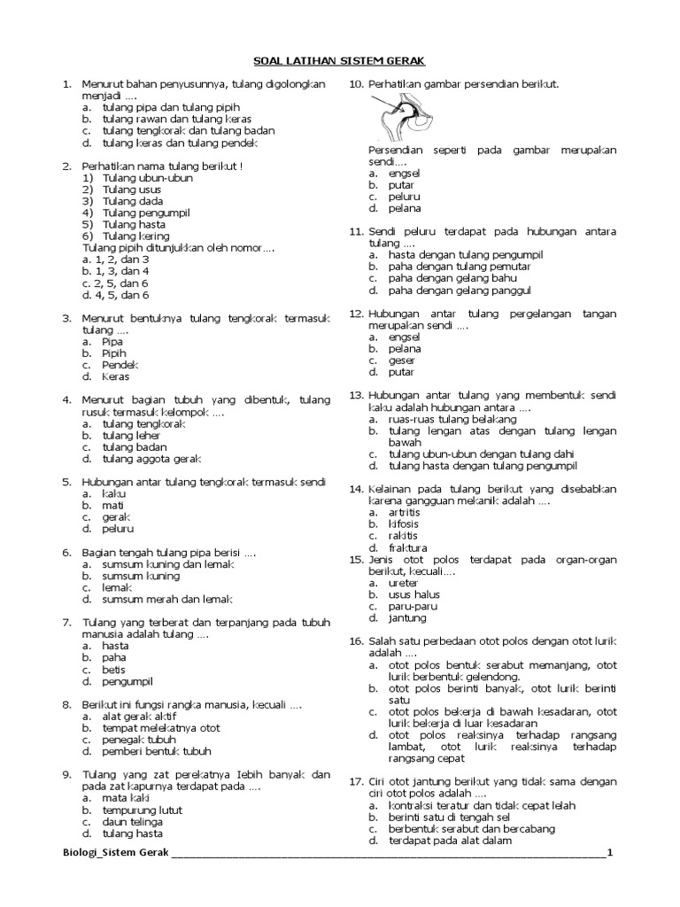 Soal Latihan Sistem Gerak