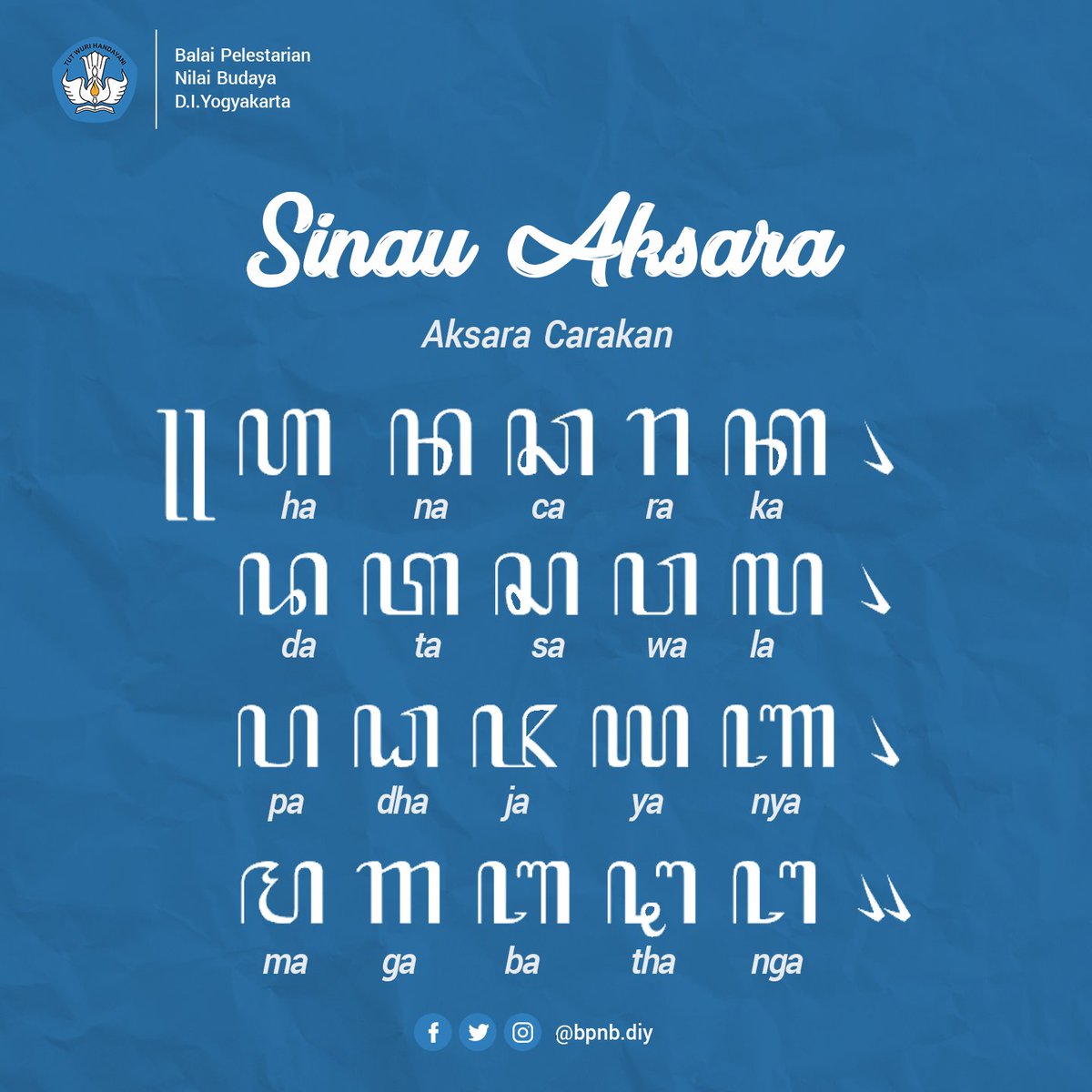 BPNB D.I. Yogyakarta Twitter: “Yuk, mulai belajar dari mengenal 20 aksara Jawa atau Aksara Carakan yang bisa kamu lihat di gambar. Jangan lupa jawab pertanyaan yang ada di gambar berikutnya ya! #