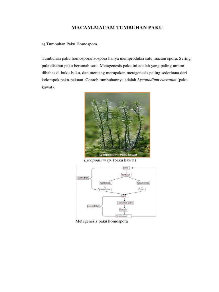 Jelaskan metagenesis pada tumbuhan paku homospora - Brainly.co.id