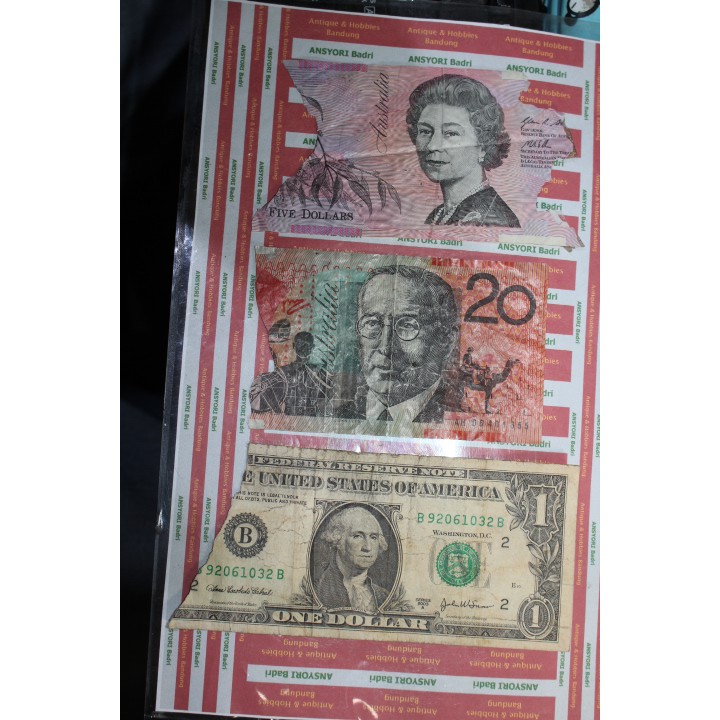 uang dollar australia dan america sobek borongan iklan f435 di Lapak Antique And Hobbies Bandung | Bukalapak