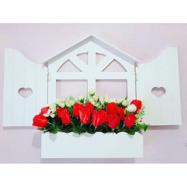 HIASAN DINDING VAS BUNGA MOTIF JENDELA SHABBY | Shopee Indonesia