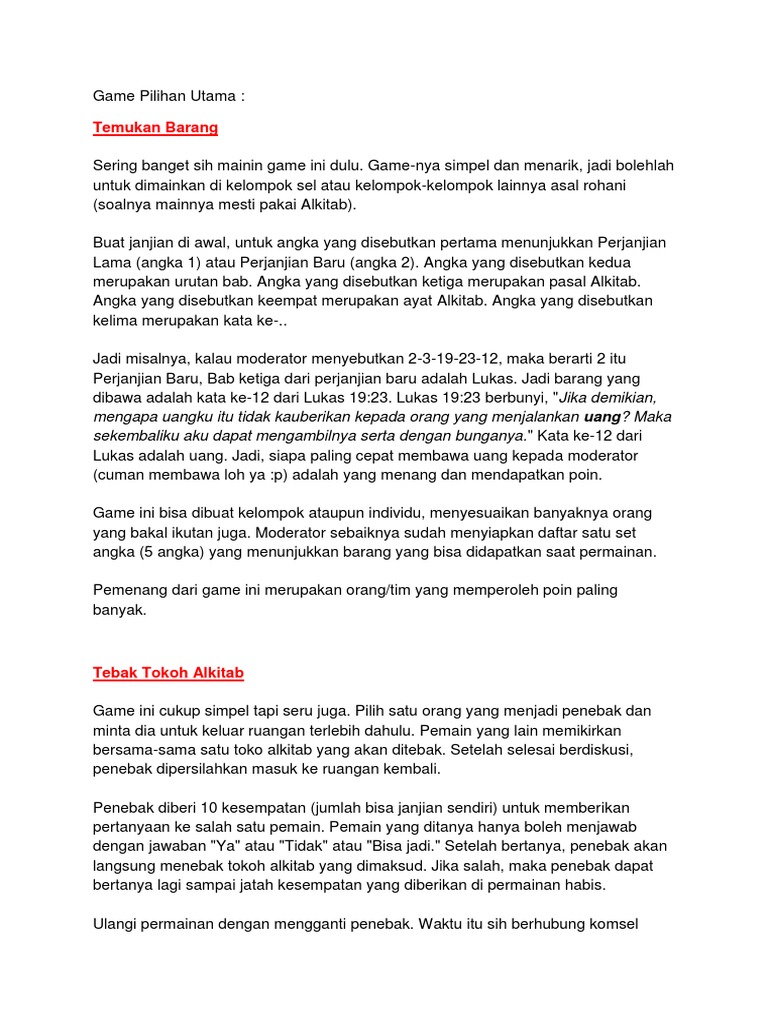 Kumpulan Permainan Alkitab