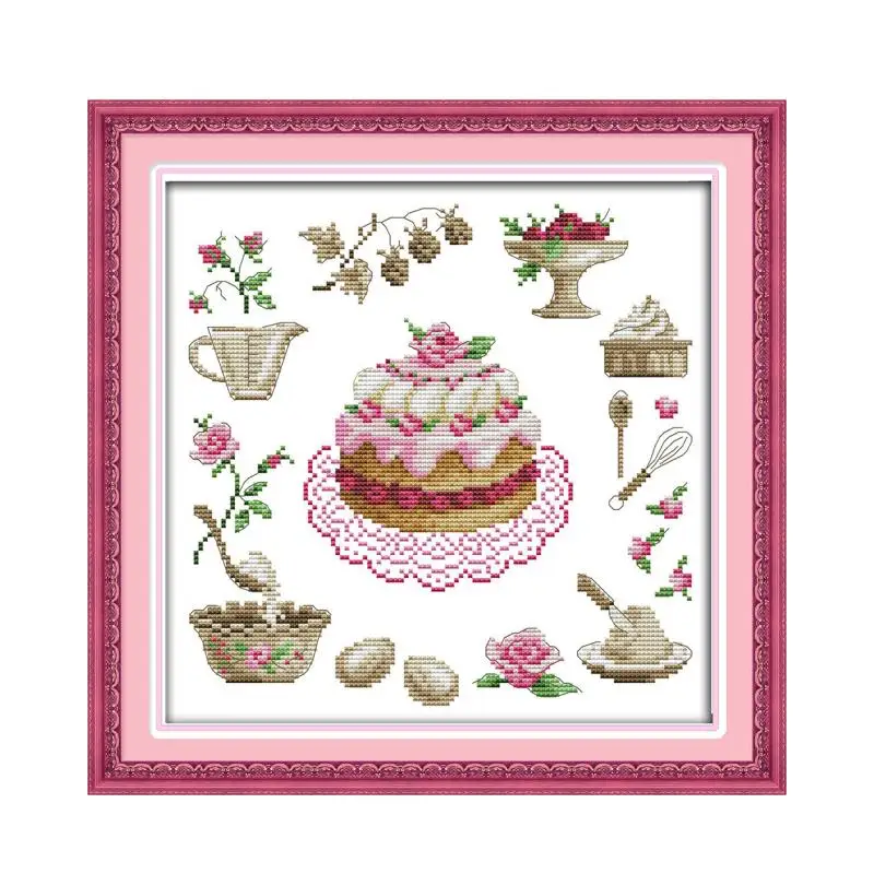 Kue Ulang Tahun Cross Stitch Kit Gambar Kartun Makanan Aida 14ct 11ct Count Cetak Kanvas Jahitan Bordir DIY Buatan Tangan Menjahit PLUS|handmade needlework|embroidery diycross stitch kits - AliExpress