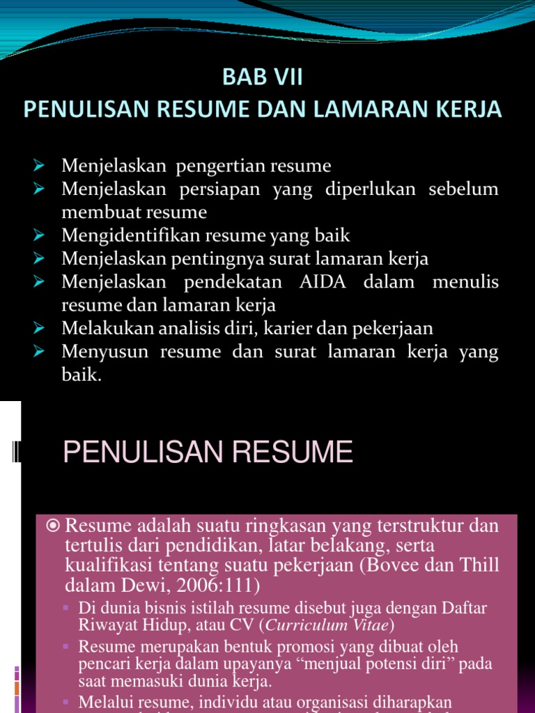 BAB VII PENULISAN RESUME DAN LAMARAN KERJA - ppt download