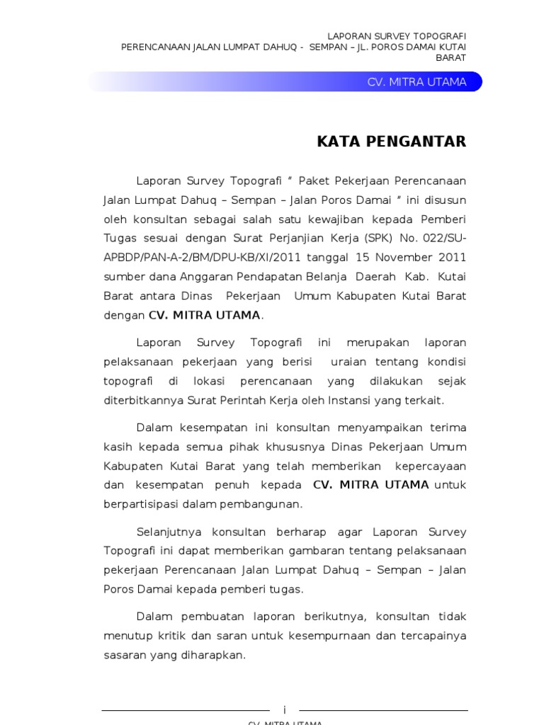 Kata Pengantar: CV. Abdi Kriasy Konsultan mendapat kepercayaan untuk melaksanakan pekerjaan SID