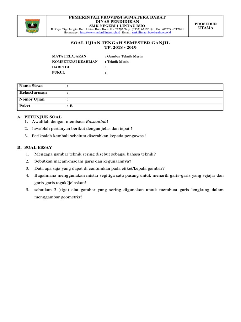 Soal UTS GTM Ganjil 2018 Paket B