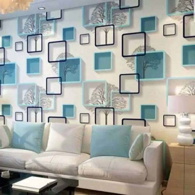 Wallpaper dinding 3 dimensi Biru 45 cm X 10 m | Shopee Indonesia