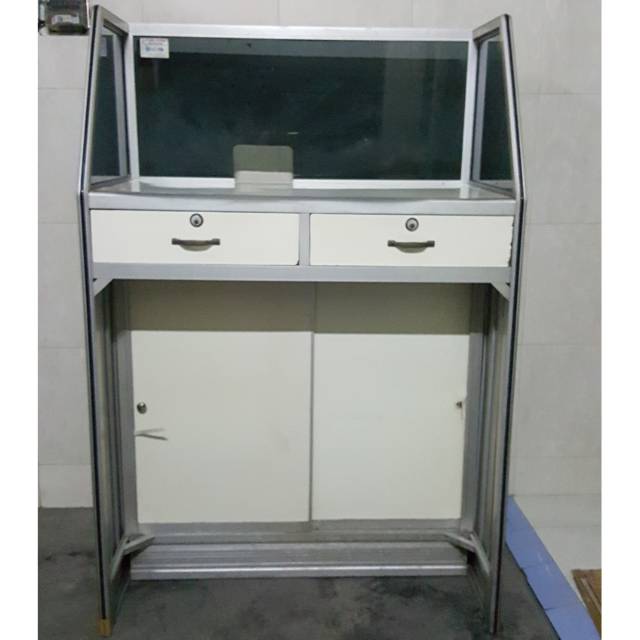 Meja kasir bekas bagus putih silver PLT = 1m0,5m1,5m sale murah sekali | Shopee Indonesia