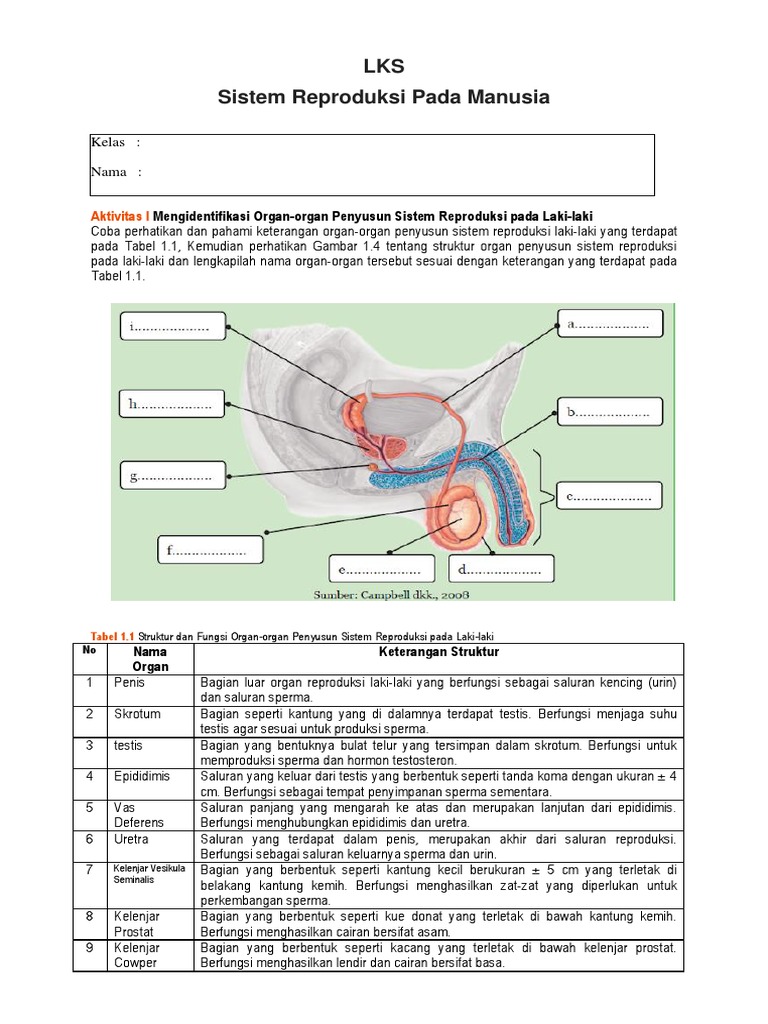 tabel1.1 dan melengkapi gambar 1.4 struktur orfan penyusun organ reproduksi pada laki laki - Brainly.co.id