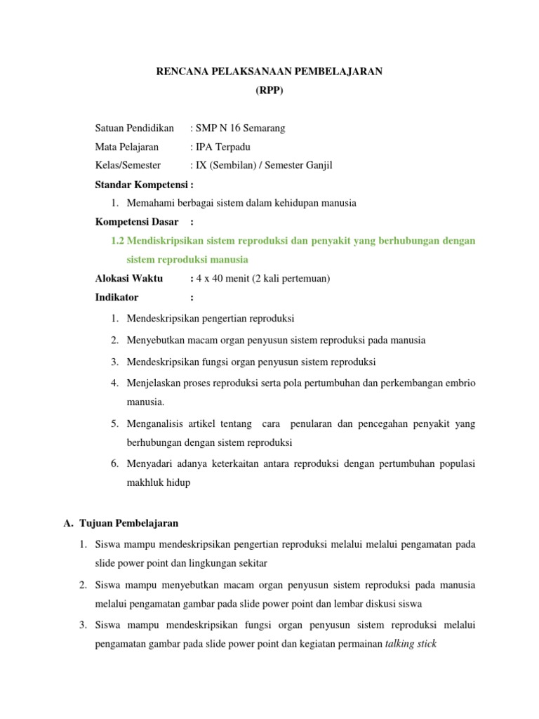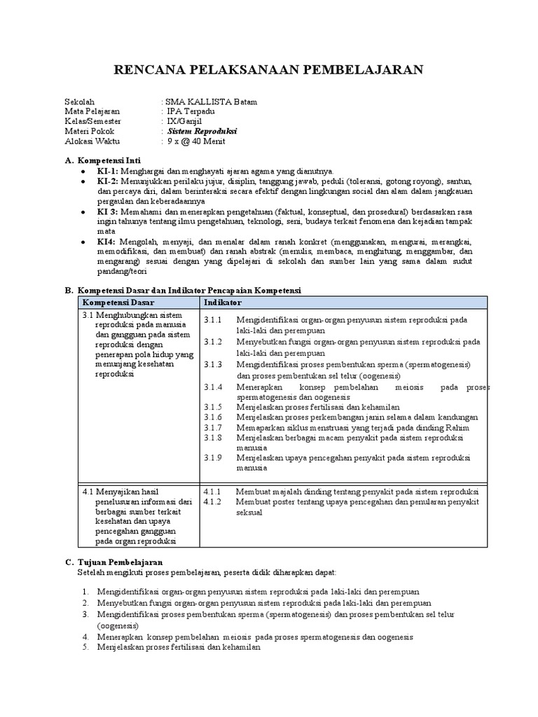 PDF) RPP K13 IX Sistem Reproduksi Manusia | Koko Budi Santoso - Academia.edu