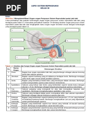 Tabel Struktur Dan Fungsi Organ Organ Penyusun Sistem Reproduksi Pada Laki Laki