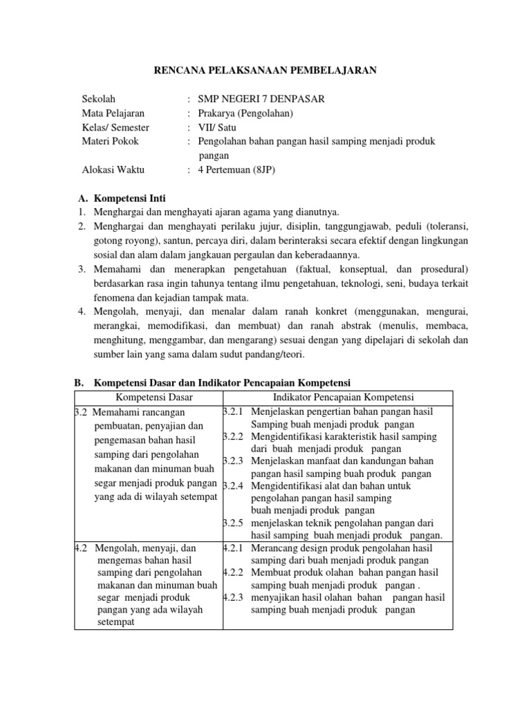 Rpp prakarya kelas vii pengolahan hasil samping buah