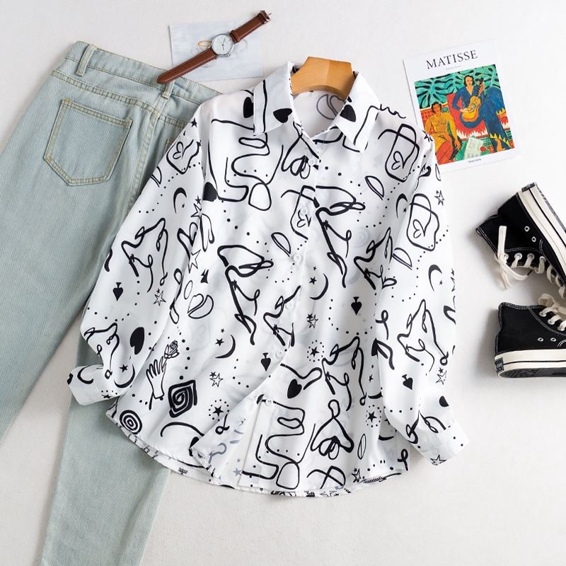 Hot menjual rasa desain Korea grafiti niche kemeja liar perempuan lengan panjang gaun musim gugur ba | Shopee Indonesia