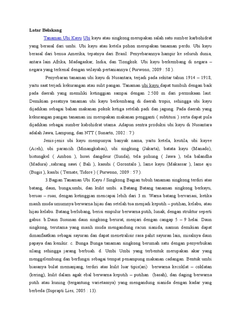 Latar BelakangTanaman Ubi Kayu Ubi Kayu Atau Singkong Merupakan Salah Satu Sumber Karbohidrat Yang Berasal Dari Umbi